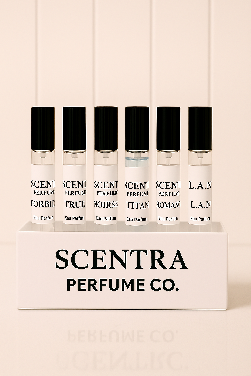 Scentra Perfume Co. Men’s Discovery Set—a curated collection of six bold, masculine fragrances crafted for every mood and moment.